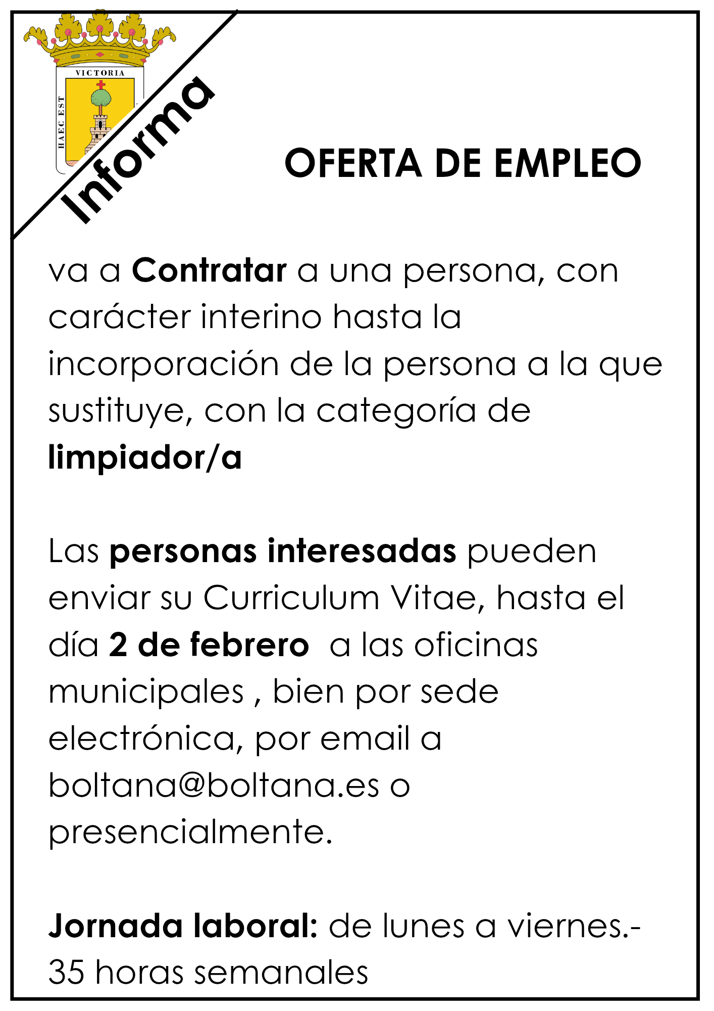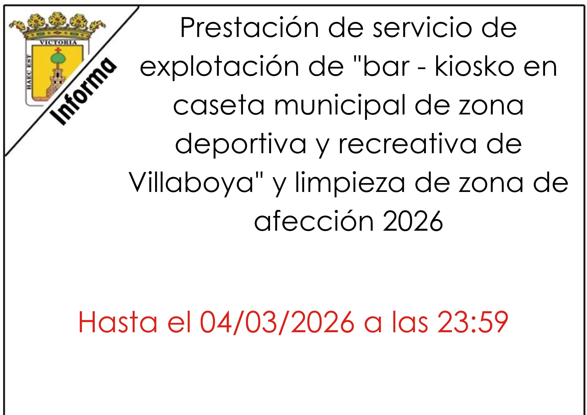 El Ayuntamiento informa de la apertura del plazo para presentar ofertas para la prestación del servicio de: