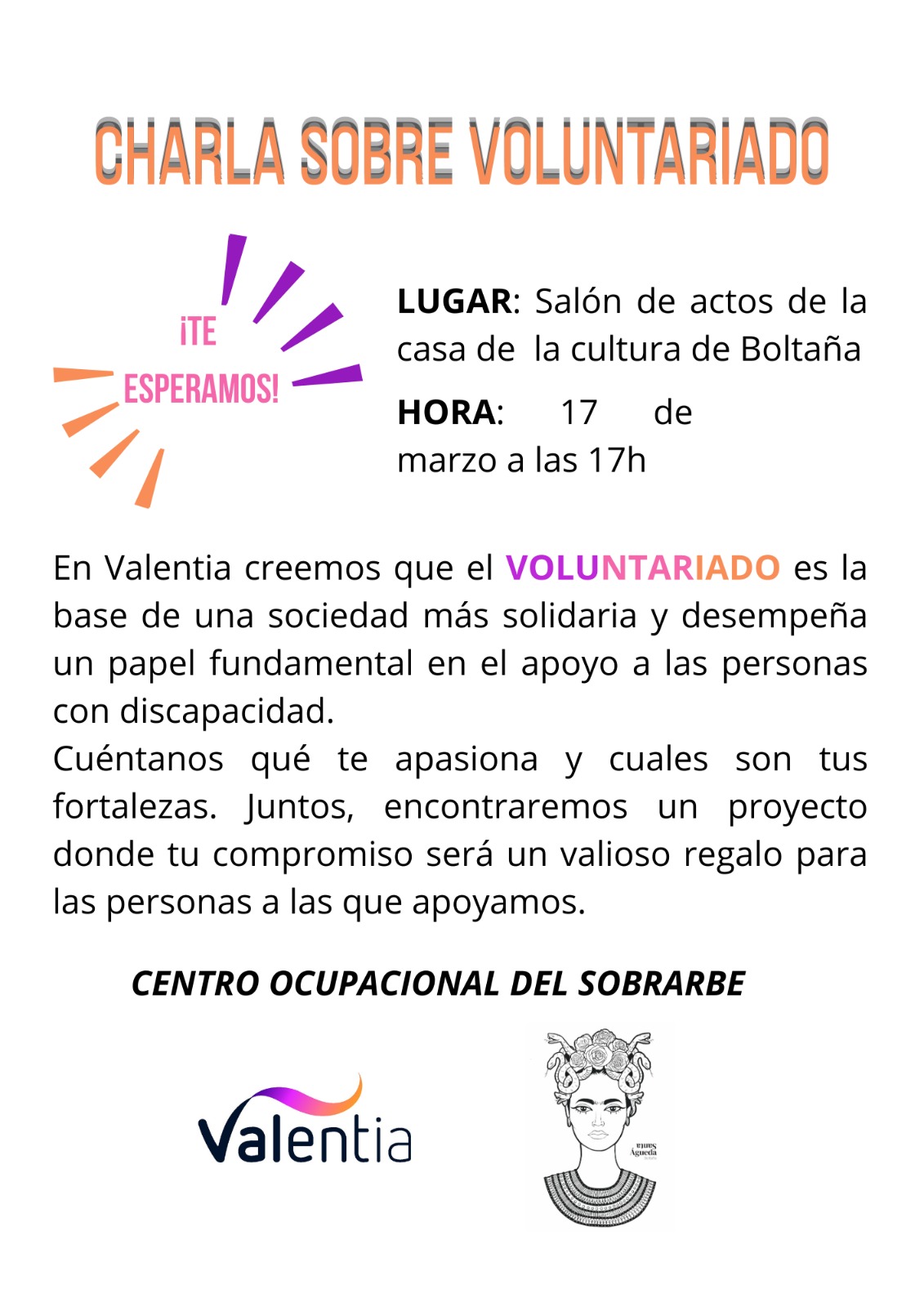 El próximo 17 de marzo a las 17:00 h, el Salón de actos de la Casa de la Cultura de Boltaña acogerá una charla sobre voluntariado organizada por Valentia y el Centro Ocupacional del Sobrarbe.